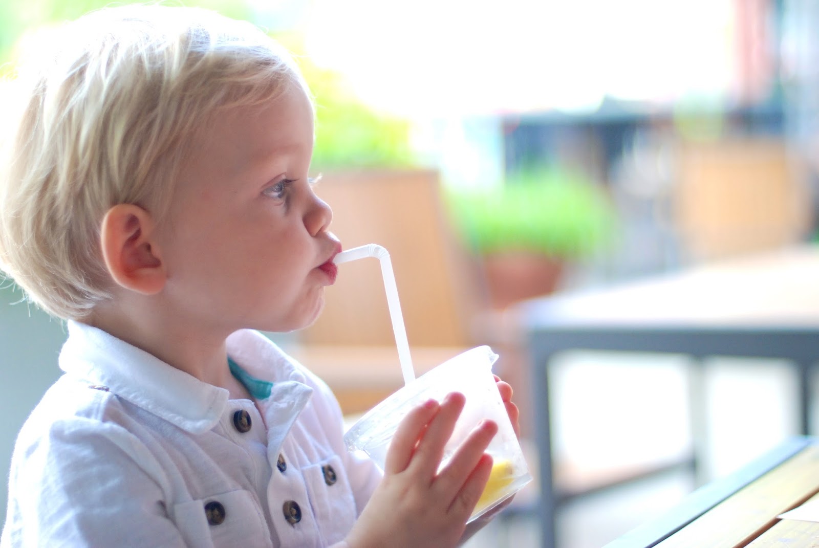 Luke's first official day drinking out of a restaurant cup with a straw…yaaay! No more need to bring sippie cups along with us!